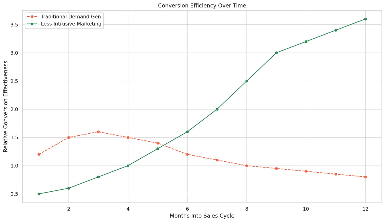 Organizations that leverage AI to enhance less intrusive approaches—rather than simply automating traditional demand generation—will likely see superior results as these technologies continue to evolve.