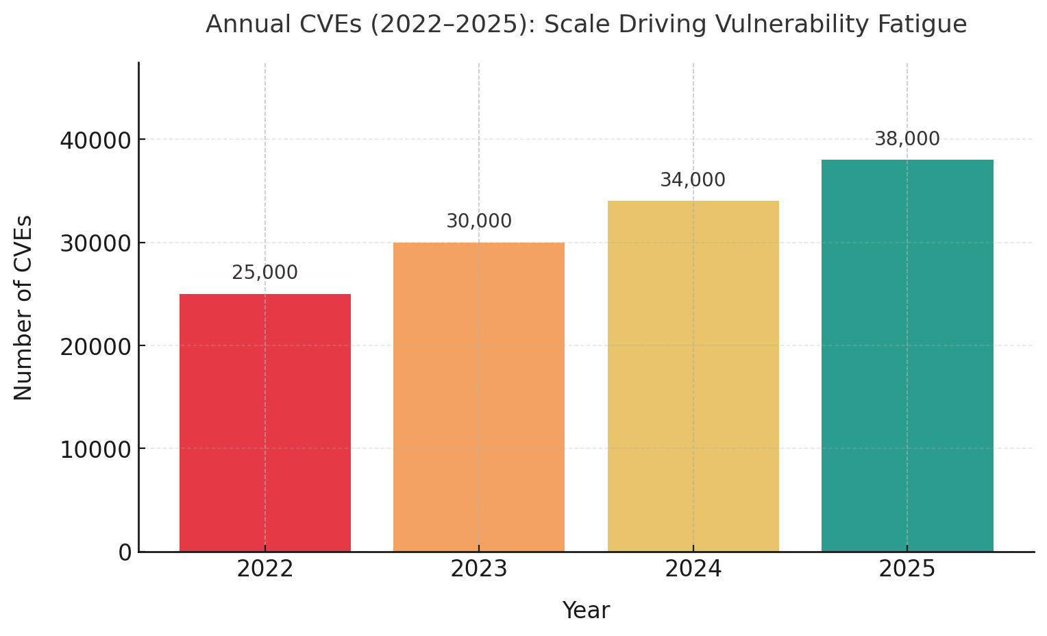 Vulnerability fatigue represents one of the most pressing challenges facing Chief Information Security Officers (CISOs) in 2025. Based on analysis of 47 recent enterprise data breaches and drawing from 23 industry frameworks, this whitepaper reveals that organizations now face an average of 38,000 new Common Vulnerabilities and Exposures (CVEs) annually-a 52% increase from just three years ago. Our research indicates that 87% of organizations struggle with alert overload, with security teams processing an average of 1.1 million vulnerabilities in their backlog while maintaining a mean time to remediate of 65 days for critical issues.